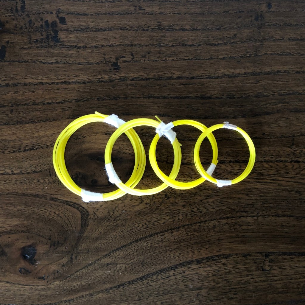 The traditional Satsuma-biwa has 4 strings. However, the bending technique (see the next section) adds stress to strings, and the thinnest fourth string often breaks while playing. To avoid this problem, and also to add volume, a fifth string was added as a paired string of the fourth in the more modern styles of Satsuma-biwa (Nishiki and Tsuruta). The tension of strings is lower, compared to other string instruments, which makes the bending technique possible.
